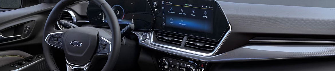 The 2026 Chevrolet Trax offers a range of trims, each tailored to meet diverse tastes and needs. At the base level, the LS trim presents a clean, efficient look. Moving up, the 1RS trim introduces an added layer of sophistication, featuring red interior accents for those who seek a more refined presence on the road. For an even more elevated experience, the LT trim offers a sportier stance, with bold design elements, such as 17-inch machined two-tone wheels. The 2RS trim brings unique RS badging and black bowtie emblems. Last in the lineup, the ACTIV trim level includes a striking black grille with titanium chrome accents as well as unique interior accents. Each trim is carefully designed, with attention to detail that ensures the 2026 Chevrolet Trax makes a statement wherever it goes.