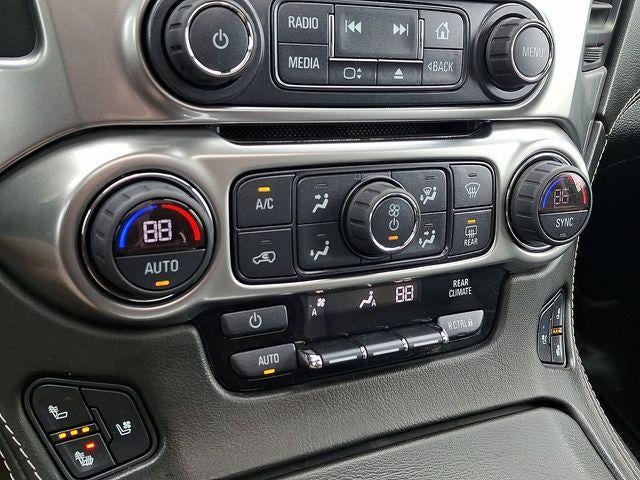 4WD, Jet Black Leather, 10 Speakers, 1st & 2nd Row Color-Keyed Carpeted Floor Mats, 3.08 Rear Axle Ratio, 3rd Row 60/40 Power Fold Split-Bench, 3rd row seats: split-bench, 4-Wheel Antilock Disc Brakes w/Brake Assist, 4-Wheel Disc Brakes, 5 12-Volt Auxiliary Power Outlets, ABS brakes, Adaptive suspension, Adjustable pedals, Air Conditioning, Alloy wheels, AM/FM radio: SiriusXM, Apple CarPlay/Android Auto, Auto High-beam Headlights, Auto-dimming door mirrors, Auto-Dimming Inside Rear-View Mirror, Auto-dimming Rear-View mirror, Automatic temperature control, Black Assist Steps w/Chrome Accent Strip, Bluetooth® For Phone, Bodyside moldings, Bose Centerpoint Premium 10-Speaker Surround Sound, Brake assist, Bumpers: body-color, Cargo Net, CD player, Color-Keyed Carpeting Floor Covering, Compass, Delay-off headlights, Driver door bin, Driver Inboard & Front Passenger Airbags, Driver vanity mirror, Dual front impact airbags, Dual front side impact airbags, Electronic Cruise Control w/Set & Resume Speed, Electronic Stability Control, Emergency communication system: OnStar and Chevrolet connected services capable, Enhanced Driver Alert Package (Y86), Exterior Parking Camera Rear, Floor Console, Fog Lamps, Forward Collision Alert, Front & Rear Park Assist, Front anti-roll bar, Front Bucket Seats, Front Center Armrest, Front dual zone A/C, Front fog lights, Front Heated Reclining Bucket Seats, Front Passenger 6-Way Power Seat Adjuster, Front reading lights, Front wheel independent suspension, Fully automatic headlights, Garage door transmitter, Hands Free Power Liftgate, HD Radio, Heated & Ventilated Driver & Front Passenger Seats, Heated 2nd Row Seats, Heated door mirrors, Heated front seats, Heated Leather Wrapped Steering Wheel, Heated rear seats, Heated steering wheel, High-Intensity Discharge Headlights, Illuminated entry, IntelliBeam Headlamps, Lane Change Alert w/Side Blind Zone Alert, Lane Keep Assist w/Lane Departure Warning, Low Speed Forward Automatic Braking, Low tire pressure warning, Magnetic Ride Control Suspension Package, Memory seat, Memory Settings, Navigation System, Occupant sensing airbag, Outside temperature display, Overhead airbag, Overhead console, Panic alarm, Passenger door bin, Passenger vanity mirror, Passive Entry System, Pedal memory, Perforated Leather-Appointed Seat Trim, Power door mirrors, Power driver seat, Power Liftgate, Power passenger seat, Power Release 2nd Row Bucket Seats, Power steering, Power Tilt & Telescopic Steering Column, Power windows, Power-Adjustable Pedals, Power-Folding Heated Outside Mirrors, Premium audio system: Chevrolet MyLink, Push Button Keyless Start, Radio: Chevrolet Infotainment AM/FM Stereo w/Nav, Rain sensing wipers, Rear air conditioning, Rear anti-roll bar, Rear Cross Traffic Alert, Rear reading lights, Rear window defroster, Rear window wiper, Remote Keyless Entry, Remote keyless entry, Remote Vehicle Start, Roof rack: rails only, Roof-Mounted Luggage Rack Side Rails, Security system, Single-Slot CD/MP3 Player, SiriusXM NavTraffic, SiriusXM Radio, Speed control, Speed-sensing steering, Split folding rear seat, Spoiler, Steering wheel memory, Steering wheel mounted audio controls, Tachometer, Traction control, Trip computer, Turn signal indicator mirrors, Universal Home Remote, Variably intermittent wipers, Ventilated front seats