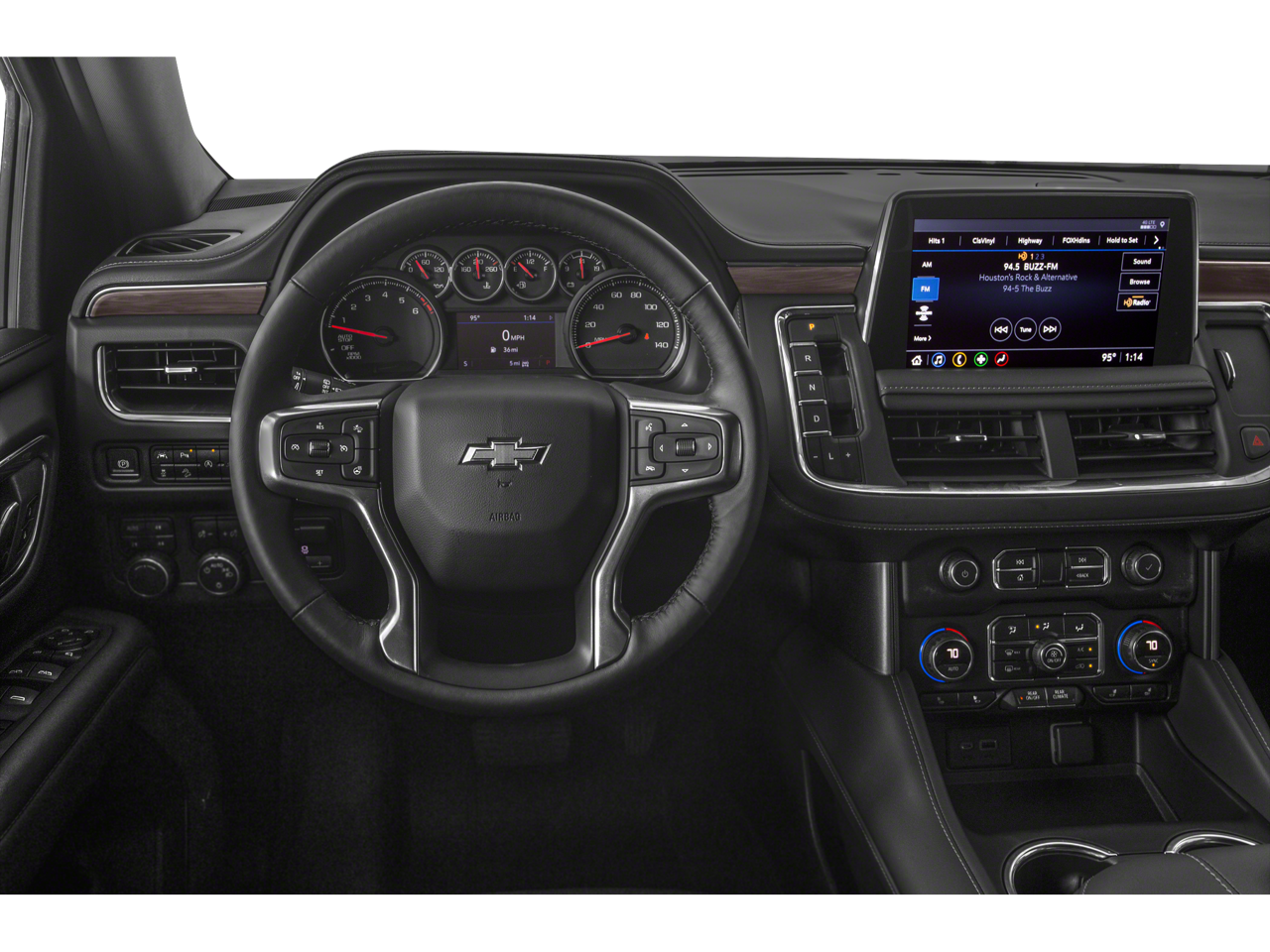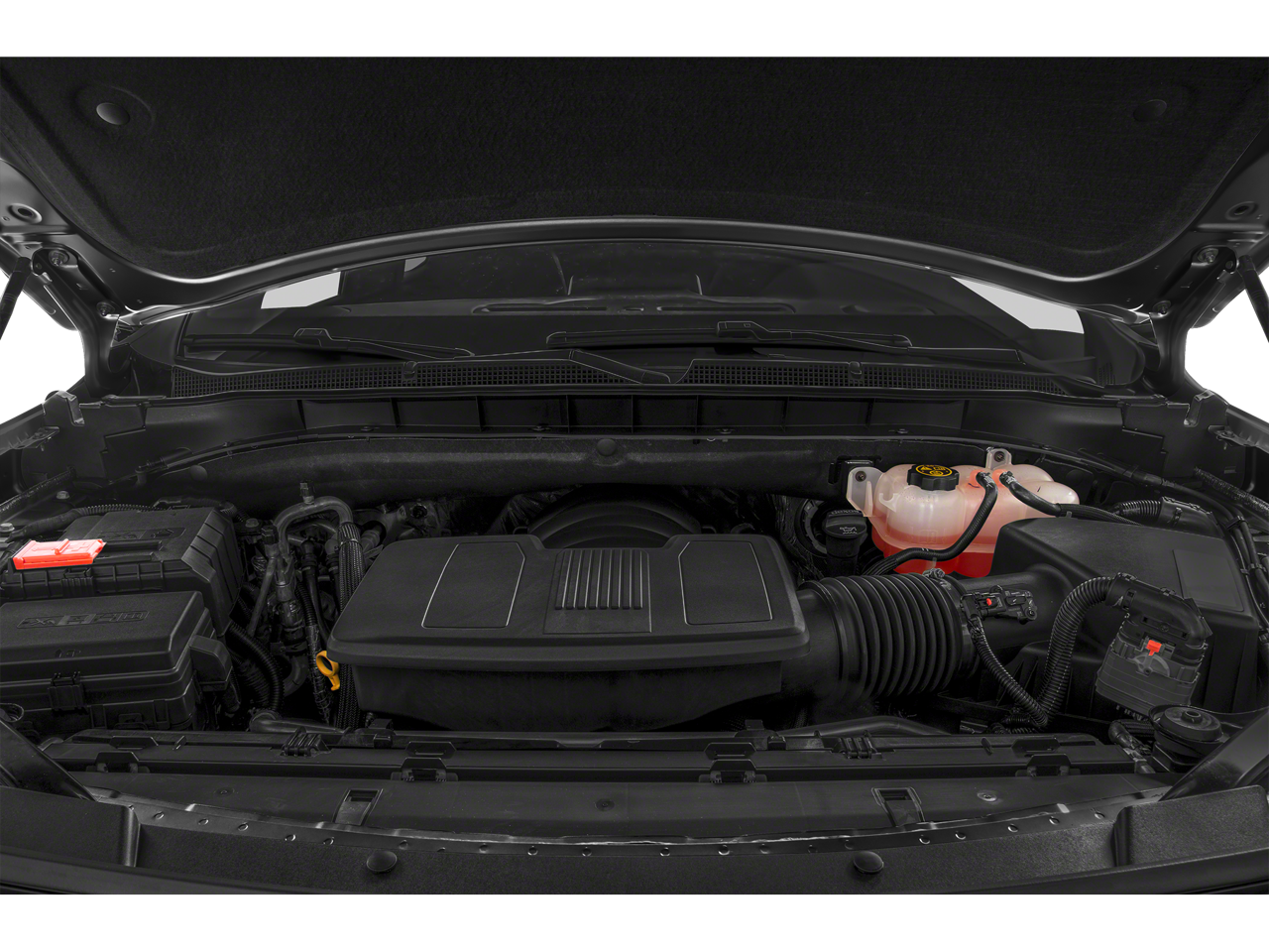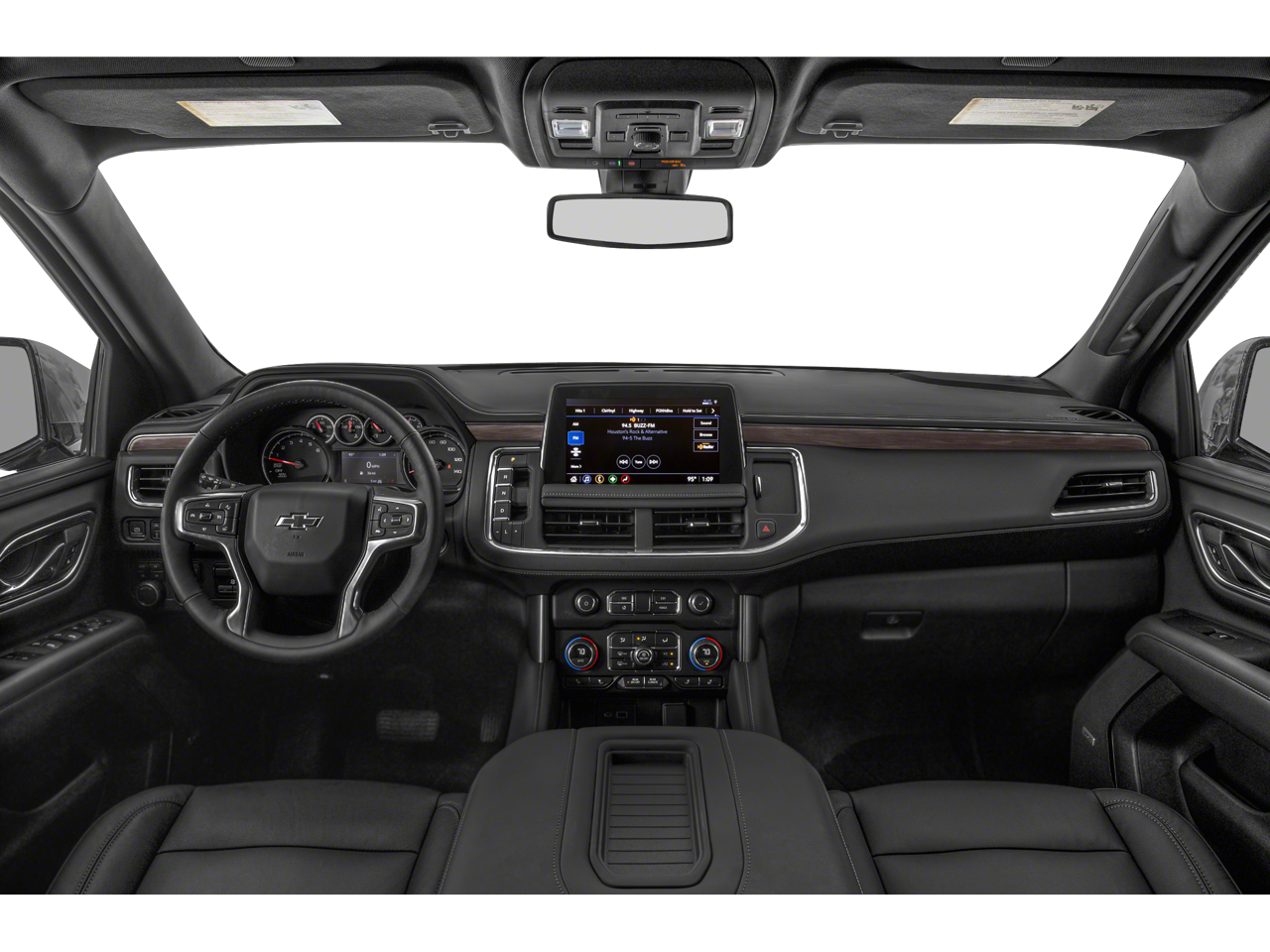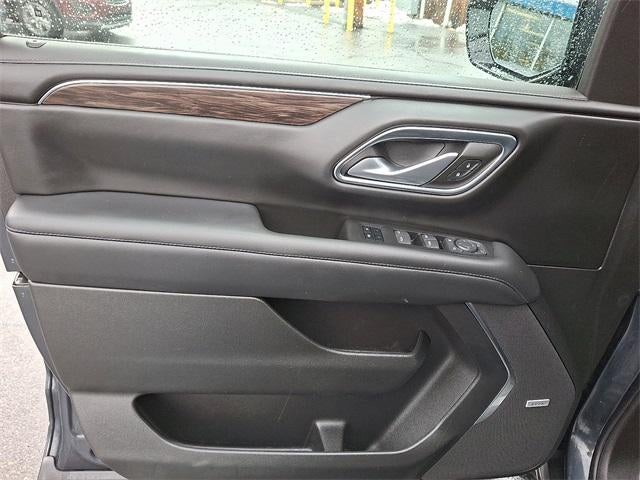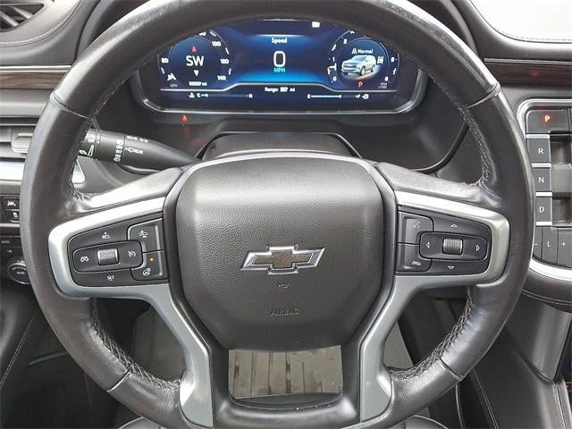 4WD, Black Leather, 10-Way Power Driver & Passenger Seat Adjusters, 1st & 2nd Row Color-Keyed Carpeted Floor Mats, 2-Speed Active Electronic AutoTrac Transfer Case, 2nd Row Pwr Release 60/40 Split-Folding Bench Seat, 3.23 Rear Axle Ratio, 3rd Row 60/40 Power-Folding Split-Bench Seat, 3rd row seats: split-bench, 4-Wheel Disc Brakes, 9 Speakers, ABS brakes, Air Conditioning, Alloy wheels, AM/FM radio: SiriusXM with 360L, Apple CarPlay/Android Auto, Auto High-beam Headlights, Auto-dimming Rear-View mirror, Automatic Stop/Start, Automatic temperature control, Black Tubular Assist Steps, Bose 9-Speaker Stereo Audio System Feature, Brake assist, Bright Front & Rear Door Sill Plates, Bumpers: body-color, Color-Keyed Carpeting Floor Covering, Compass, Delay-off headlights, Driver & Front Outboard Passenger Airbags, Driver Alert Package, Driver vanity mirror, Dual front impact airbags, Dual front side impact airbags, Dual-Pane Power Panoramic Sunroof, Electronic Stability Control, Emergency communication system: OnStar and Chevrolet connected services capable, Enhanced Driver Information Center, Floor Console w/Storage Area, Four wheel independent suspension, Front anti-roll bar, Front Bucket Seats, Front Center Armrest, Front dual zone A/C, Front High-Approach Angle Fascia, Front High-Back Reclining Bucket Seats, Front reading lights, Fully automatic headlights, Garage door transmitter, Hands-Free Rear Power Programmable Liftgate, HD Surround Vision, Heated 2nd Row Outboard Seats, Heated door mirrors, Heated Driver & Front Passenger Seats, Heated Steering Wheel, Hill Descent Control, Illuminated entry, Infotainment Display, Lane Change Alert w/Side Blind Zone Alert, Leather steering wheel, Leather-Appointed Seat Trim, Leather-Wrapped Steering Wheel, LED Daytime Running Lamps, License Plate Front Mounting Package, Low tire pressure warning, Luxury Package, Memory seat, Memory Settings, Memory Settings for Driver, Navigation System, Occupant sensing airbag, Outside Heated Power-Adjustable Mirrors, Outside temperature display, Overhead airbag, Overhead console, Panic alarm, Passenger vanity mirror, Power door mirrors, Power driver seat, Power Liftgate, Power passenger seat, Power Release 2nd Row Bucket Seats, Power steering, Power Tilt & Telescopic Steering Column, Power windows, Preferred Equipment Group 2Z7, Premium audio system: Chevrolet Infotainment System 3, Premium Smooth Ride Suspension, Radio: Chevrolet Infotainment 3 Premium System, Rain sensing wipers, Rear air conditioning, Rear anti-roll bar, Rear Cross Traffic Alert, Rear Pedestrian Alert, Rear reading lights, Rear seat center armrest, Rear window defroster, Rear window wiper, Red Horizontal-Mounted Recovery Hooks, Remote keyless entry, Remote Start, Roof rack: rails only, Security system, Set of 4 Wheel Locks (LPO), SiriusXM Radio w/360L, Speed control, Speed-sensing steering, Split folding rear seat, Spoiler, Start/Stop System Disable Button, Steering wheel mounted audio controls, Tachometer, Telescoping steering wheel, Tilt steering wheel, Traction control, Trip computer, Universal Home Remote, Variably intermittent wipers, Voltmeter, Wheels: 20" x 9" Machined Aluminum,