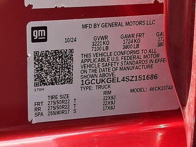 10-Speed Automatic, 4WD, Jet Black Leather, 10-Way Power Driver Seat w/Lumbar, 10-Way Power Passenger Seat Adjuster w/Lumbar, 12.3" Multicolor Reconfigurable Digital Display, 120-Volt Bed Mounted Power Outlet, 120-Volt Interior Power Outlet, 15" Diagonal Multicolor Head-Up Display, 170 Amp Alternator, 2 USB Data Ports, 2nd Row Heated Outboard Seats, 3 Years SiriusXM, 3.23 Rear Axle Ratio, 4-Wheel Disc Brakes, 7 Speakers, ABS brakes, Adaptive Cruise Control, Air Conditioning, All-Weather Floor Liner (LPO), Alloy wheels, AM/FM radio: SiriusXM with 360L, Apple CarPlay/Android Auto, Auto High-beam Headlights, Auto-dimming door mirrors, Auto-Dimming Inside Rear-View Mirror, Auto-dimming Rear-View mirror, Auto-Locking Rear Differential, Automatic Emergency Braking, Automatic temperature control, Bed View Camera, Black Name Plates (LPO), Bluetooth® For Phone, Brake assist, Bumpers: chrome, Chevytec Spray-On Black Bedliner, Chrome Mirror Caps, Color-Keyed Carpeting Floor Covering, Compass, Dark Essentials Package (LPO), Deep-Tinted Glass, Delay-off headlights, Driver door bin, Driver Memory, Driver vanity mirror, Dual Active Exhaust, Dual front impact airbags, Dual front side impact airbags, Dual Rear USB Ports (Charge Only), Electric Rear-Window Defogger, Electronic Cruise Control, Electronic Stability Control, Electronic Transmission Range Selector Shifter, Emergency communication system: OnStar, EZ Lift Power Lock & Release Tailgate, Floor Mounted Center Console, Following Distance Indicator, Forward Collision Alert, Front anti-roll bar, Front Black Bowtie Emblem (LPO), Front Bucket Seats, Front Center Armrest, Front dual zone A/C, Front fog lights, Front Frame-Mounted Black Recovery Hooks, Front LED Fog Lamps, Front Pedestrian Braking, Front Rain-Sensing Wipers, Front reading lights, Front Rubberized Vinyl Floor Mats, Front wheel independent suspension, Fully automatic headlights, HD Surround Vision, Heated door mirrors, Heated Driver & Front Outboard Passenger Seats, Heated front seats, Heated Steering Wheel, Heated steering wheel, High Capacity Suspension Package, Hitch Guidance, Hitch Guidance w/Hitch View, Illuminated entry, In-Vehicle Trailering System App, Integrated Trailer Brake Controller, IntelliBeam Automatic High Beam On/Off, Keyless Open & Start, Lane Keep Assist w/Lane Departure Warning, LED Cargo Area Lighting, Low tire pressure warning, LTZ Convenience Package, LTZ Convenience Package II, LTZ Plus Package, LTZ Premium Package, Memory seat, Multi-Flex Tailgate, Occupant sensing airbag, OnStar Services Capable, Outside Heated Power-Adjustable Mirrors, Outside temperature display, Overhead airbag, Overhead console, Panic alarm, Passenger door bin, Passenger vanity mirror, Perforated Leather-Appointed Front Seat Trim, Perimeter Lighting, Power door mirrors, Power driver seat, Power Front Passenger Windows w/Express Up/Down, Power Front Windows w/Driver Express Up/Down, Power passenger seat, Power Rear Windows w/Express Down, Power Sliding Rear Window, Power Sunroof, Power Tailgate, Power Tilt & Telescoping Steering Column, Power windows, Power-Retractable Assist Steps, Preferred Equipment Group 1LZ, Premium audio system: Chevrolet Infotainment 3 Premium, Premium Bose 7-Speaker Sound System, Radio data system